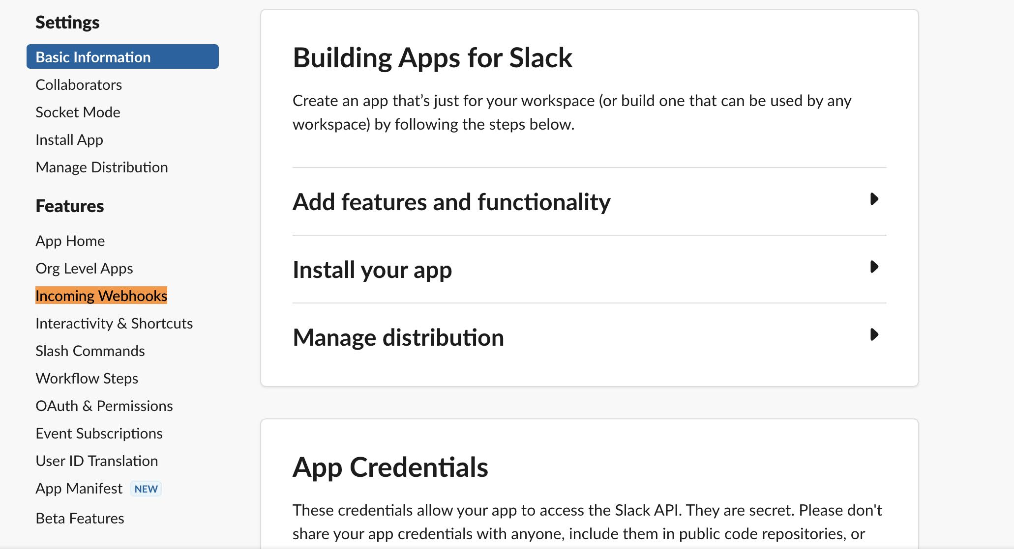 - Activate Incoming Webhooks の右側にあるスイッチを有効にする